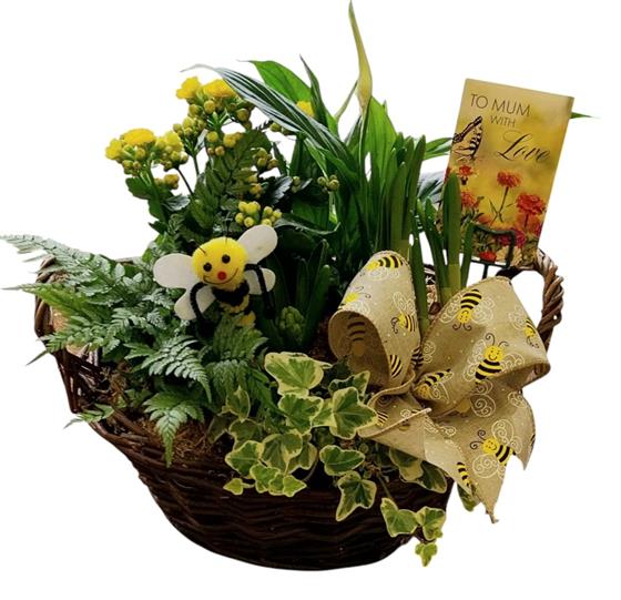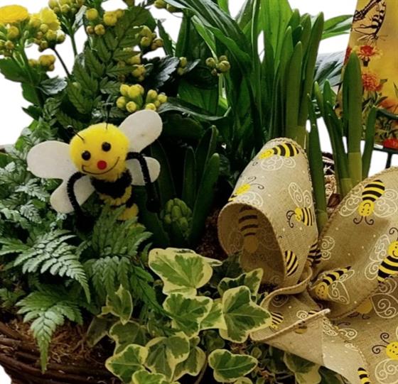 Bee happy planted basket arrangement