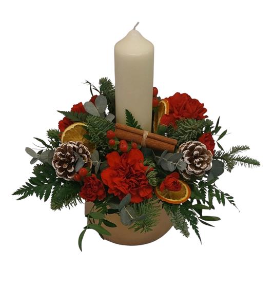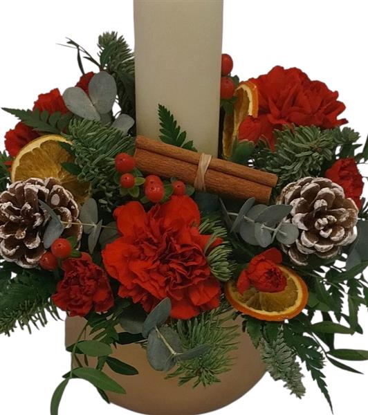 This classic Christmas candle arrangement combines all your festive favourites arranged into a beautiful centre piece.