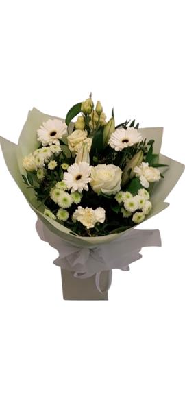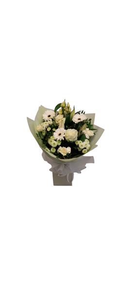 hand-tied neutral bouquet in a subtle white and cream colour palette.