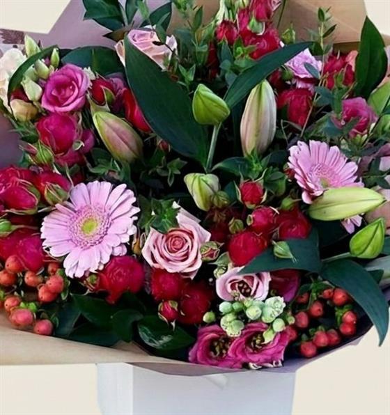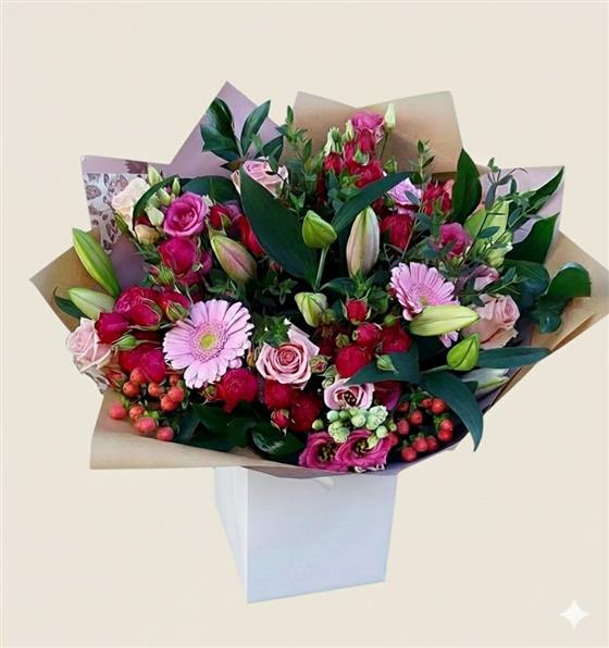 Our skilled florists will create a stunning bouquet using a selection of the finest blooms in shades of pink and cerise.